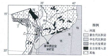 3. 甲、乙、丙、丁四地中,最有可能是该采矿区成矿物质来源地的是(