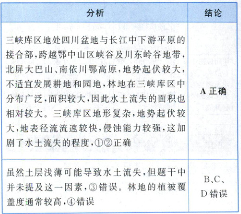 5.B 三峡库区位于亚热带季风气候区,夏季降水丰沛、强度大,且多暴雨天气,水土流失量往往在夏季达到最大,B正确。春季、秋季、冬季降水量相对较少,水土流失量也相对较小,A、C、D错误。