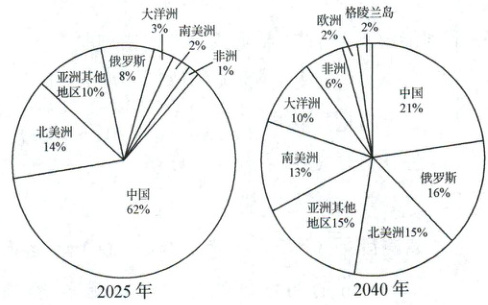 (易错易混)(2025 河南豫北名校期中)稀土是现代高新技术产业的关键原材料。随着全球能源转型和高新技术产业的发展,稀土需求量持续上升,其供应格局也在发生着变化。下图示意 2025 年和 2040 年全球稀土供应格局(含预测)。据此完成 10~12 题。