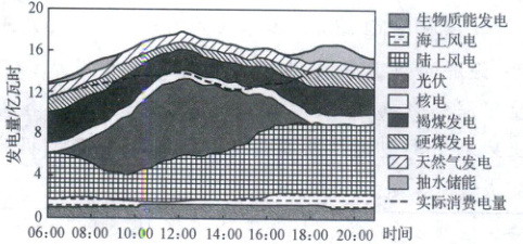 (易错易混)实现高比例可再生电力供应是实现“碳中和”的关键,但目前全球实现高比例可再生电力供应仍面临较大困难。下图示意 2022 年某日德国 6:00—21:00(柏林时间)电力生产与消费状况,目前德国清洁能源的开发和利用位居世界前列。据此完成 5~6 题。