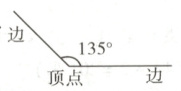 2. (石家庄市高邑·期末)画一个比平角小45°的角,并标出角各部分的名称。(4分)