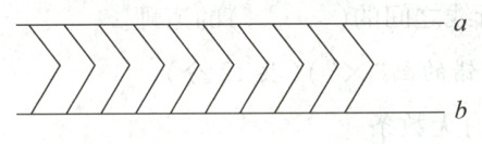 观察下图,图形中的直线a和直线b平行吗?请你利用学过的知识,动手检验一下。