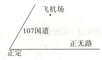 正定飞机场的位置如图,计划从飞机场修建两条公路,请你设计并测量: