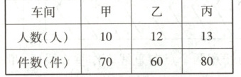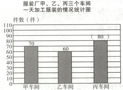 六、(任丘市·期末)服装厂甲、乙、丙三个车间的人数及一天加工服装的情况统计图表如下。(8分)