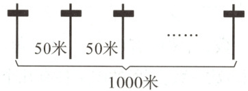 9. 如下图,公路一旁每隔50米有一根电线杆,从第1根到第(