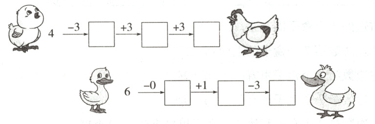 10 - 3$◯$4 + 6 8 + 2$◯$5 + 5 10 - 5$◯$9 - 6 3 + 7$◯$4 + 5