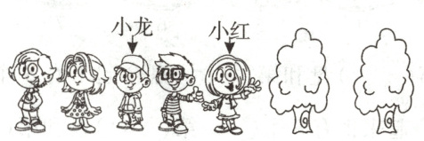 (2) 小朋友排队,有人被树挡住了。从前边数,小龙排第3,从后边数,小红排第4,一共有(