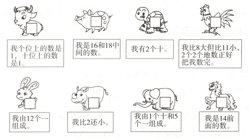 六、动物运动会开始了,猜猜我们各是几号队员,快帮我们写在身上吧!(16分)