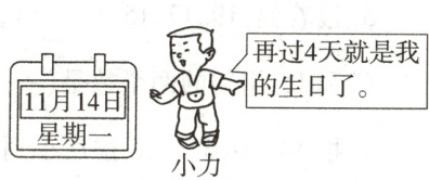 4.14 + 4 = 18(日) 答:小力的生日是11月18日,是星期五。