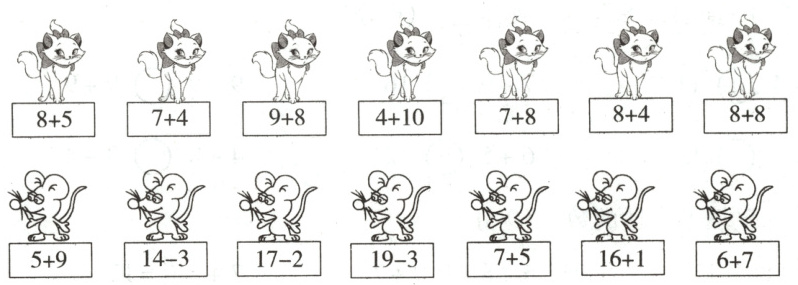黄色:4+2、5+7、6+3、2+5、14-2、16-10、18-8