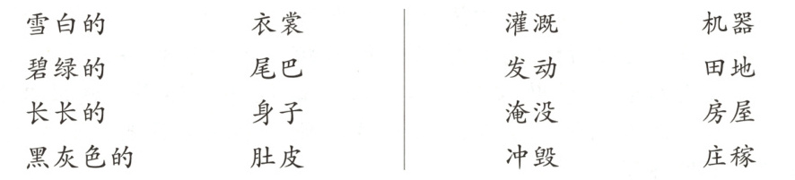 下来,人们叫我“雨”。(用加点字写句子)花朵从枝头落下来,给大地穿上了花衣裳。