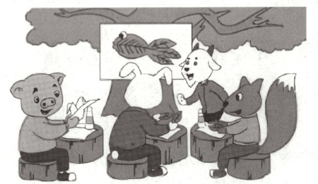在阳光灿烂的一天,森林学校里,山羊老师把漂亮的金鱼折纸挂到大家面前,笑眯眯地说:“今天我们来学折小金鱼,看谁折得最像!”