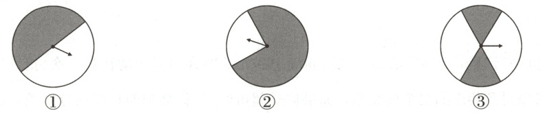 5. 如图,有三个转盘,小东和小华玩转盘游戏,指针停在白色区域算小东赢,指针停在灰色区域算小华赢。想让小东获胜的可能性大,要在转盘(