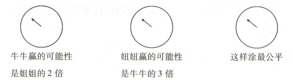 牛牛和妞妞用转盘做游戏,指针停在涂色区域算牛牛赢,指针停在空白区域算妞妞赢,请你按要求在下面转盘上分一分,涂一涂。