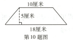 4.10 [解析]梯形的上底=梯形的面积×2÷高 - 下底,即64×2÷4 - 22=32 - 22=10(cm)。