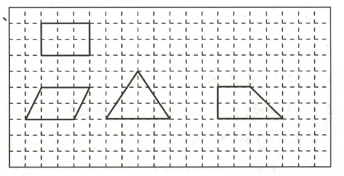 在下面的格子图中,分别画一个平行四边形、一个三角形和一个梯形,使它们的面积都与图中长方形的面积相等。(每个小方格的边长表示1厘米)