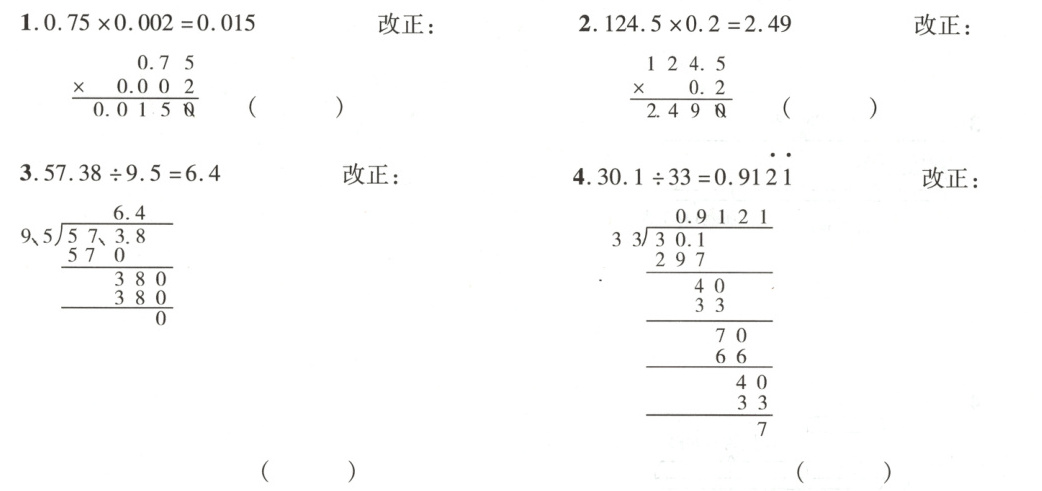 三、下面的计算对吗?对的画“√”,错的画“×”,并改正。
