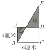 2. 如图,三角形甲的面积比三角形乙的面积大 6 平方厘米,求 DE 的长。