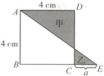 3. 如图,三角形甲的面积比三角形乙的面积大 6 cm²,求 a 的长度。