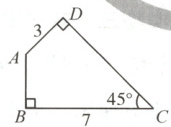 4.如图,延长BA,CD交于点E,$\angle C = 45°$,则三角形EBC和三角形EAD都是等腰直角三角形。