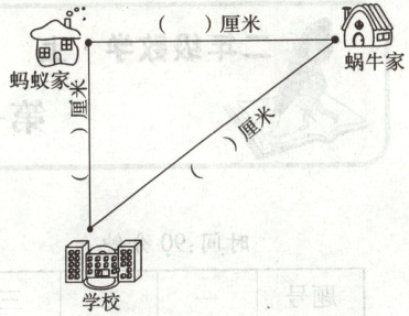 (3) 蚂蚁从家出发先到蜗牛家,然后到学校,共爬了()厘米。