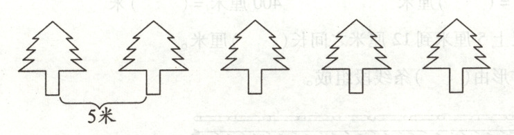 4. 每相邻两棵松树相隔$5$米,小兔从第$1$棵松树处跑到第$5$棵松树处,它跑了多少米? (5分)