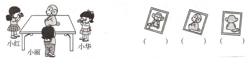 3. 下面的两幅图分别是谁看到的? 把名字填在括号里。