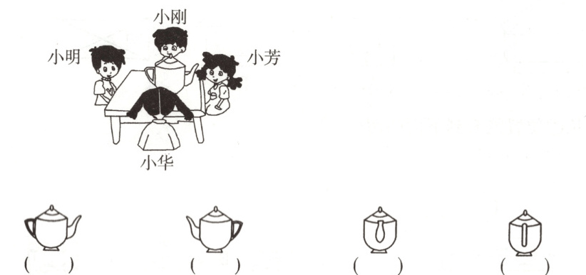 五、下面茶壶的样子分别是谁看到的? 在括号里填上他们的名字。(12分)