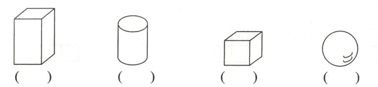四、观察立体图形的一个面是$◯$,可能是观察下面哪个立体图形得到的? 在正确答案的下面画“