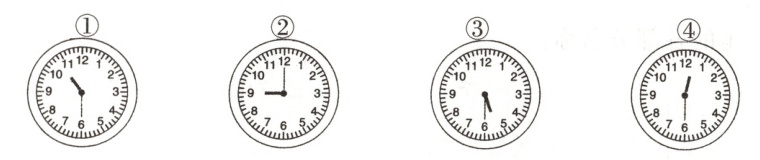 八、下面钟面上时针和分针形成的角分别是什么角?你能把下面四个角从小到大排一下吗?(填序号)(8分)