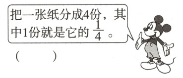 1.× 改正:把一张纸平均分成4份,其中1份就是它的$\frac{1}{4}。$