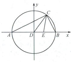 5.A 以$D$为原点,$AB$为$x$轴,建立如图所示的平面直角坐标系.则$A(-4,0)$,$B(4,0)$,$D(0,0)$,设$C(4\cos\theta,4\sin\theta)$,$E(t,0)$,其中$0<\theta<\pi$,$-4\leqslant t\leqslant4$,$\overrightarrow{CE}=(t - 4\cos\theta,-4\sin\theta)$,$\overrightarrow{CD}=(-4\cos\theta,-4\sin\theta)$,所以$\overrightarrow{CE}·\overrightarrow{CD}=(t - 4\cos\theta,-4\sin\theta)·(-4\cos\theta,-4\sin\theta)=-4t\cos\theta+16\cos^{2}\theta+16\sin^{2}\theta=-4t\cos\theta + 16$,由题知$\overrightarrow{CE}·\overrightarrow{CD}=4$,所以$-4t\cos\theta+16 = 4$,所以$t\cos\theta=3$,$\vert\overrightarrow{CE}\vert=\sqrt{(t - 4\cos\theta)^{2}+(-4\sin\theta)^{2}}=\sqrt{16 - 8t\cos\theta+t^{2}}=\sqrt{t^{2}-8}$,其中$-4\leqslant t\leqslant4$,所以当$t=\pm4$时,$\vert\overrightarrow{CE}\vert$取得最大值$2\sqrt{2}$。