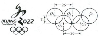 3. [2023 福建格致中学期末]如图是北京2022年冬奥会会徽的图案,奥运五环的大小和间距如图所示.若圆的半径均为 $ 12 $,相邻圆圆心水平距离为 $ 26 $,两排圆圆心垂直距离为 $ 11 $.设五个圆的圆心分别为 $ O_1,O_2,O_3,O_4,O_5 $,则$\overrightarrow{O_4O_1}·(\overrightarrow{O_4O_5}+\overrightarrow{O_4O_2})$的值为(