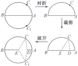 6. [生活生产,2025江苏南京五校共同体期末]如图,将一圆形纸片沿直径AB对折,使圆上两点C,C₁重合,D,E为直径AB上两点,且∠ECD=30°,对折后沿直线DC,EC裁剪,展开得到四边形CEC₁D.若该圆形的直径为2,AC= $\frac{1}{2}$AB,则当四边形CEC₁D的面积最小时,DE=