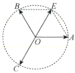 以$OA$,$OB$为邻边作平行四边形$OAEB$,则该四边形为菱形,且$\angle AOE = \frac{\pi}{3}$,所以$\triangle AOE$为等边三角形,且$\vert\overrightarrow{OE}\vert = 1$。又因为$\angle AOC = \frac{2\pi}{3}$,$\vert\overrightarrow{OC}\vert = 1$,所以$\overrightarrow{OC} + \overrightarrow{OE} = \boldsymbol{0}$,此时$\vert\boldsymbol{p}\vert = \vert\overrightarrow{OA} + \overrightarrow{OB} + \overrightarrow{OC}\vert = 0$。综上所述,$0 \leq \vert\boldsymbol{p}\vert \leq 3$。