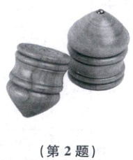 2. [2024 河南郑州期中]陀螺又称陀罗,是中国民间最早的娱乐玩具之一,在山西夏县新石器时代的遗址中就发现了石制的陀螺.如图所示的陀螺近似看作由一个圆锥与一个圆柱组成的组合体,其中圆柱的底面半径为 1,圆锥与圆柱的高均为 1,若该陀螺由一个球形材料削去多余部分制成,则该球形材料的体积最小为(