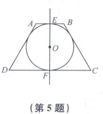 5. [2024 福建莆田期中]已知等腰梯形 $ABCD$,$AB = 2$,$CD = 6$,圆 $O$为梯形 $ABCD$ 的内切圆,并与 $AB$,$CD$ 分别切于点 $E$,$F$,如图所示.以 $EF$ 所在直线为轴,梯形 $ABCD$ 和圆 $O$ 分别旋转一周形成的曲面围成的几何体的体积分别为 $V_1$,$V_2$,则 $\frac{V_1}{V_2}$ 的值为(