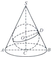 7.BC 如图,圆锥的高$SC = h$,底面半径$CB = r$,所以母线$SB = \sqrt{h^{2} + r^{2}}$,因为$OC = OD = 1$,$SC \perp AB$,$OD \perp SB$,所以$\triangle SDO \sim \triangle SCB$,所以$\frac{SO}{SB} = \frac{OD}{BC}$,即$\frac{h - 1}{SB} = \frac{1}{r}$,所以$SB = rh - r$,即$rh - r = \sqrt{h^{2} + r^{2}}$,得$h^{2} + 2 r^{2} h = r^{2} h^{2}$,所以$\frac{2}{h} + \frac{1}{r^{2}} = 1$,故$A$错误;圆锥的体积$V = \frac{1}{3} \pi r^{2} h$,圆锥的表面积$S = \frac{1}{2} (rh - r) · 2 \pi r + \pi r^{2} = \pi r^{2} h$,圆锥的体积与表面积之比为$\frac{1}{3}$,为定值,故$B$正确;$1 = \frac{2}{h} + \frac{1}{r^{2}} \geqslant 2 \sqrt{\frac{2}{h r^{2}}}$,$r^{2} h \geqslant 8$,当且仅当$\frac{2}{h} = \frac{1}{r^{2}} = \frac{1}{2}$,即$h = 4$,$r = \sqrt{2}$时等号成立,圆锥表面积$S = \pi r^{2} h \geqslant 8 \pi$,则$h = 4$,$r = \sqrt{2}$时圆锥表面积有最小值$8 \pi$,此时$SB = rh - r = 3 \sqrt{2}$,$AB = 2r = 2 \sqrt{2}$,$SB \neq AB$,圆锥的顶角不是$60^{\circ}$,故$D$错误。