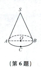 6. [多选题,2025 河北秦皇岛月考]如图,圆锥 $SO$ 的底面半径为 1,侧面积为 $3\pi$,$\triangle SAB$ 是圆锥的一个轴截面,$C$ 是底面圆周上异于 $A$,$B$ 的一点,则下列说法正确的是(