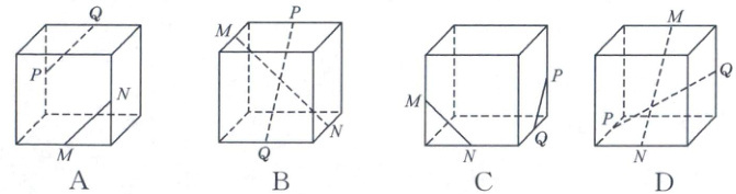 5. D 对于A,$MN$和$PQ$是平行直线,不符合题意;对于B,$MN$和$PQ$是相交直线,不符合题意;对于C,$MN$和$PQ$是相交直线,不符合题意;对于D,$MN$和$PQ$是异面直线,符合题意.