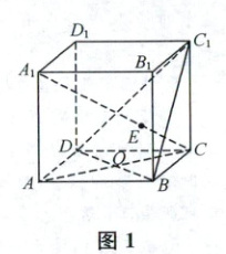 (1)如图 1,若 $AC \cap BD = O$,$A_{1}C \cap$ 平面 $BDC_{1} = E$,求证:$C_{1}$,$E$,$O$ 三点共线。
