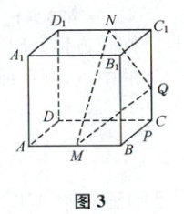 ② 过 $M$,$N$,$Q$ 三点作该正方体的截面,在图 3 中作出这个截面(不必说明画法和理由,但要保留作图痕迹)。