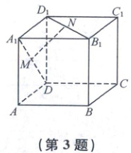 3. [2025 江苏南京期中]如图所示,在棱长为 1 的正方体 ABCD - A₁B₁C₁D₁ 中,设 M,N 分别是线段 DA₁,B₁D₁ 上的动点,若 MN // 平面 CC₁D₁D,则线段 MN 长的最小值为(
