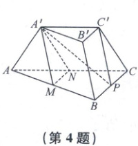4. [多选题,2024 福建福州期中]已知三棱台 ABC - A'B'C',上、下底面边长之比为 1:2,棱 AB,BC,AC 的中点分别为 M,P,N,则下列结论错误的有(