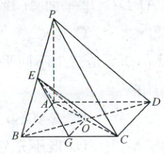 (1)知PD//EO.同理可得,EO//平面PCD,又EO∩GO = O,EO,GO⊂平面EOG,所以在棱BC上存在点G,使得平面EOG//平面PCD,且$\frac{BG}{BC}=\frac{1}{2}$.
