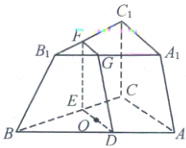 (2)设棱台的高为$h$,$\triangle A_{1}B_{1}C_{1}$的面积$S = \frac{1}{2} × 2 × 2 × \sin 60^{\circ} = \sqrt{3}$,则$S_{\triangle ABC} = \frac{9\sqrt{3}}{4}$,正三棱台$ABC - A_{1}B_{1}C_{1}$的体积$V_{三棱台A_{1}B_{1}C_{1} - ABC} = \frac{1}{3}\left(\sqrt{3} + \frac{9\sqrt{3}}{4} + \sqrt{\sqrt{3} · \frac{9\sqrt{3}}{4}}\right)h = \frac{19\sqrt{3}}{12}h$,正三棱台$B_{1}GF - BDE$的体积$V_{三棱台B_{1}GF - BDE} = \frac{1}{3}\left(\frac{\sqrt{3}}{4} + \sqrt{3} + \sqrt{\frac{\sqrt{3}}{4} · \sqrt{3}}\right)h = \frac{7\sqrt{3}}{12}h$,所以被截面截得的另一个几何体的体积为$\frac{19\sqrt{3}}{12}h - \frac{7\sqrt{3}}{12}h = \sqrt{3}h$。过点$O$和$A_{1}C_{1}$作截面,即连接$DA_{1}$,$EC_{1}$,