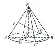 4. [2025 江苏南京期末]如图所示,$ AB $ 为圆锥 $ PO $ 底面的直径,$ C $ 为圆 $ O $ 上异于 $ A $,$ B $ 的一点,$ D $,$ F $ 分别为 $ AC $,$ PA $ 的中点,连接 $ DO $ 并延长交圆 $ O $ 于点 $ E $.