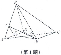 1.D 如图,设AO交BE于点G,连接FG.因为O,E分别是BD,AD的中点,所以$\frac{AG}{AO}=\frac{2}{3}$,则有$\frac{AG}{AC}=\frac{1}{3}$,因为$PC//$平面BEF,平面BEF∩平面PAC=GF,所以$GF// PC$,则$\frac{AF}{AP}=\frac{AG}{AC}=\frac{1}{3}$,即$\lambda = 3$。