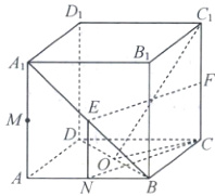 在棱$AA_1$上存在一点M,使平面$MBD\perp$平面$OCD_1$,连接$A_1C$,$MO$,$C_1M$,$AC$,则O是AC的中点,则$AC=\sqrt{2}$,$AO = CO=\frac{\sqrt{2}}{2}$。因为O是BD的中点,所以$BO = DO$,$BC_1 = DC_1$,所以$C_1O\perp BD$。因为平面$MBD\perp$平面$OCD_1$,平面$MBD\cap$平面$OCD_1 = BD$,$C_1O\subset$平面$OCD_1$,所以$C_1O\perp$平面$MBD$,$MO\subset$平面$MBD$,所以$C_1O\perp MO$,所以$MO^{2}+C_1O^{2}=C_1M^{2}$。又$MO^{2}=AM^{2}+AO^{2}$,$C_1O^{2}=C_1C^{2}+CO^{2}$,$C_1M^{2}=A_1C_1^{2}+MA^{2}$,所以$AM^{2}+AO^{2}+C_1C^{2}+CO^{2}=A_1C_1^{2}+MA^{2}$,则$AM^{2}+\frac{1}{2}+1+\frac{1}{2}=2 + MA_1^{2}$,所以$AM = MA_1$,即$AM:MA_1 = 1$。