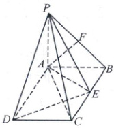 (2) 无论点 E 在边 BC 的何处,PE 与 AF 所成角都是定值,并且定值为 90°. 理由如下:如图,连接 EF,由于 PA ⊥ 平面 ABCD,BE⊂平面 ABCD,所以 EB⊥PA. 又因为 EB⊥AB,AB∩AP = A,AB,AP⊂平面 PAB,所以 EB⊥平面 PAB. 又因为 AF⊂平面 PAB,所以 AF⊥BE. 又因为 PA = AB = 1,F 是 PB 的中点,所以 AF⊥PB. 又因为 PB∩BE = B,PB,BE⊂平面 PBE,所以 AF⊥平面 PBE. 又因为 PE⊂平面 PBE,所以 AF⊥PE,即无论点 E 在边 BC 的何处,PE 与 AF 所成角都是定值 90°.